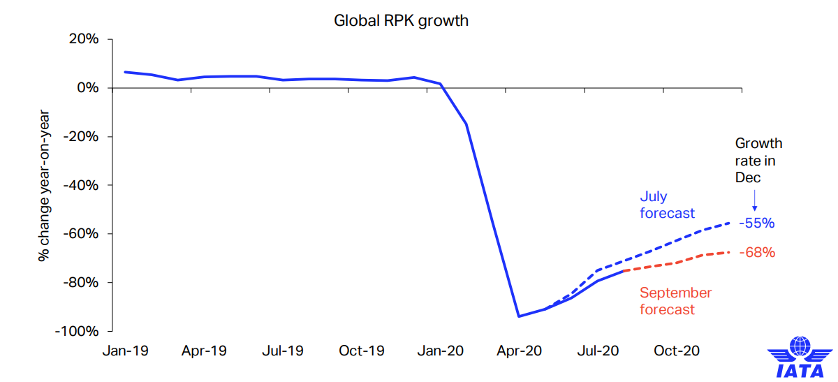 这一次新冠疫情的出现,对于航空运输业造成了巨大的伤害。此次疫情影响下,世界客运量发生了前所未有的断崖式下滑且恢复速度很慢,全球航司纷纷大幅削减运力,收入锐减甚至部分航司甚至出现了生存危机,疫情发生以来已有二十多家航空公司申请破产保护。根据国际运输航空协会的预测,全球航空业客公里收入到2020年底也只能恢复原有1/3的水平。